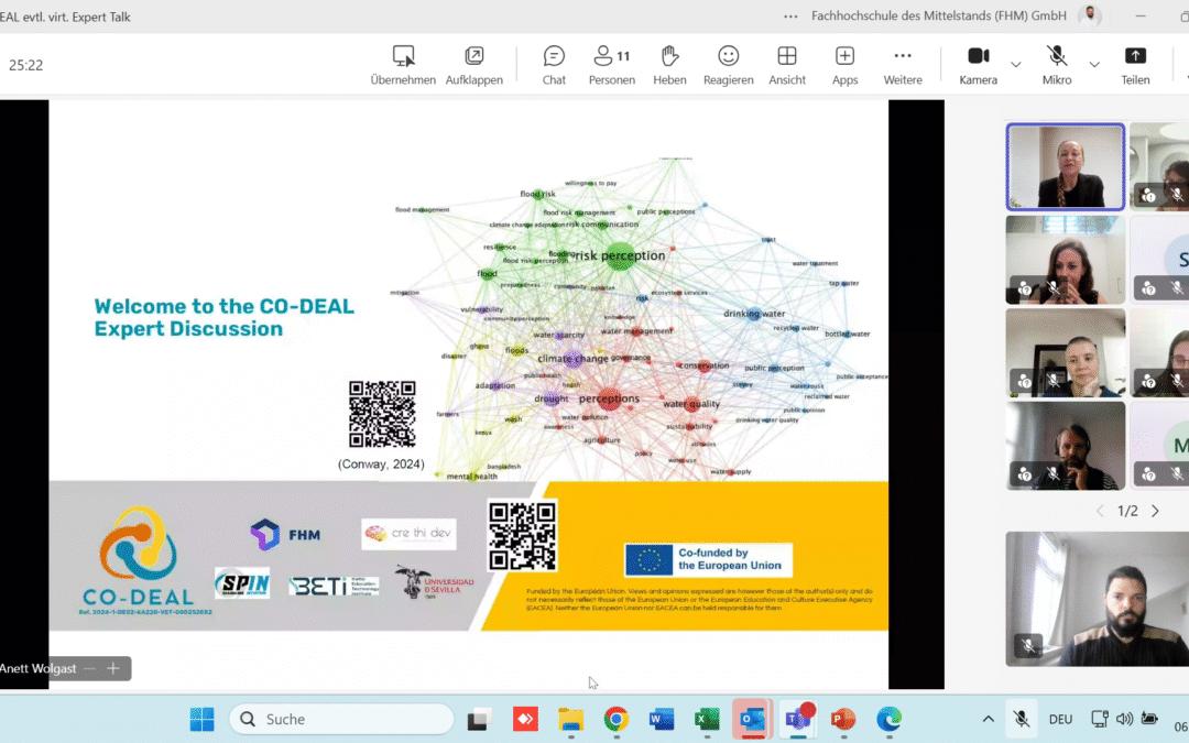 The CO-DEAL Expert Discussion, held virtually on 6 October 2025, convened European experts, municipal representatives, and project partners to exchange insights on climate-related challenges and resilience strategies. Moderated by Prof. Dr. Anett Wolgast and Tomas Lengemann, the event featured three keynote presentations followed by a moderated discussion.
